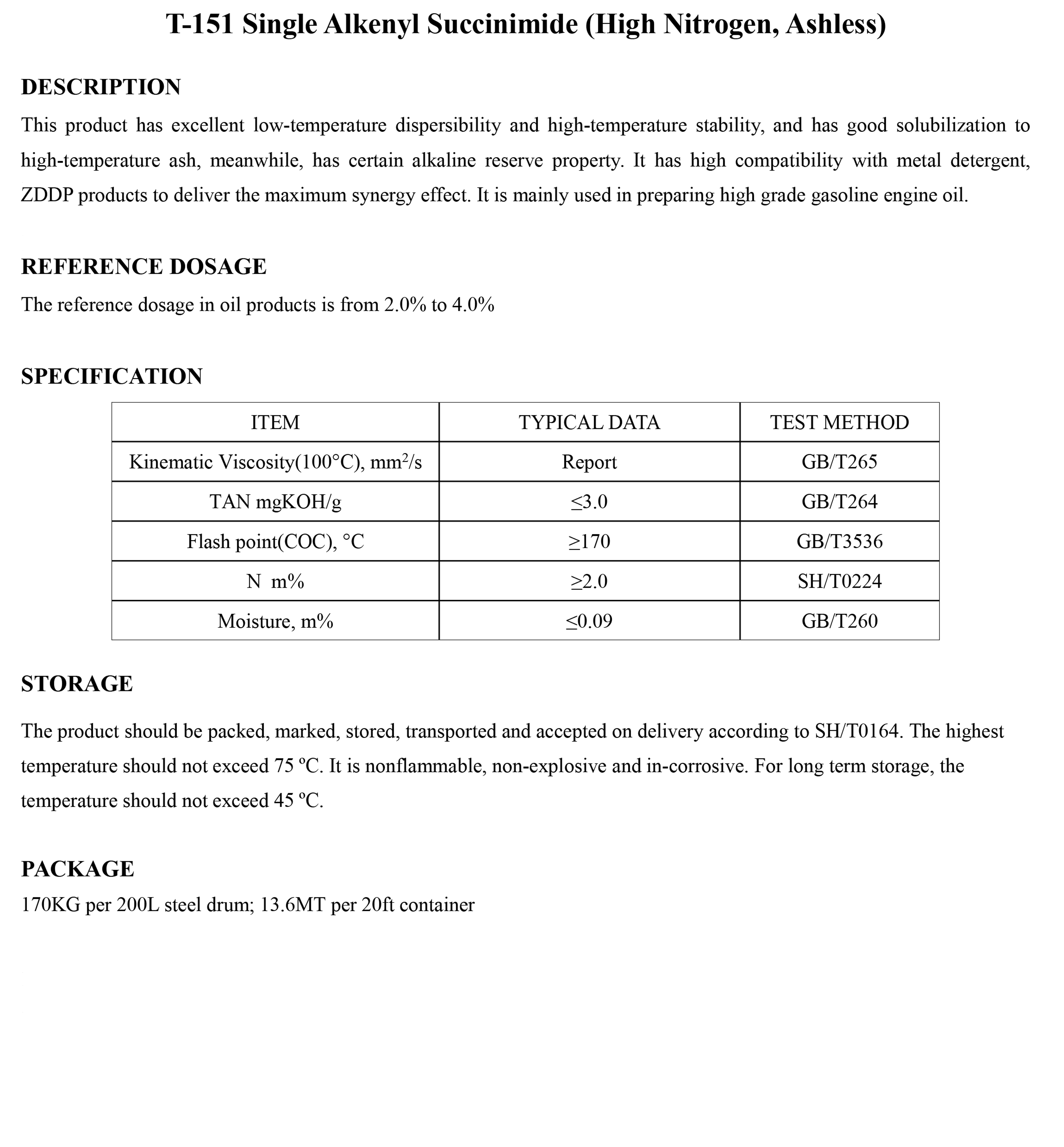 T-151 Single Alkenyl Succinimide (High Nitrogen, Ashless)-Dispersants-錦州新興石油添加劑有限責(zé)任公司