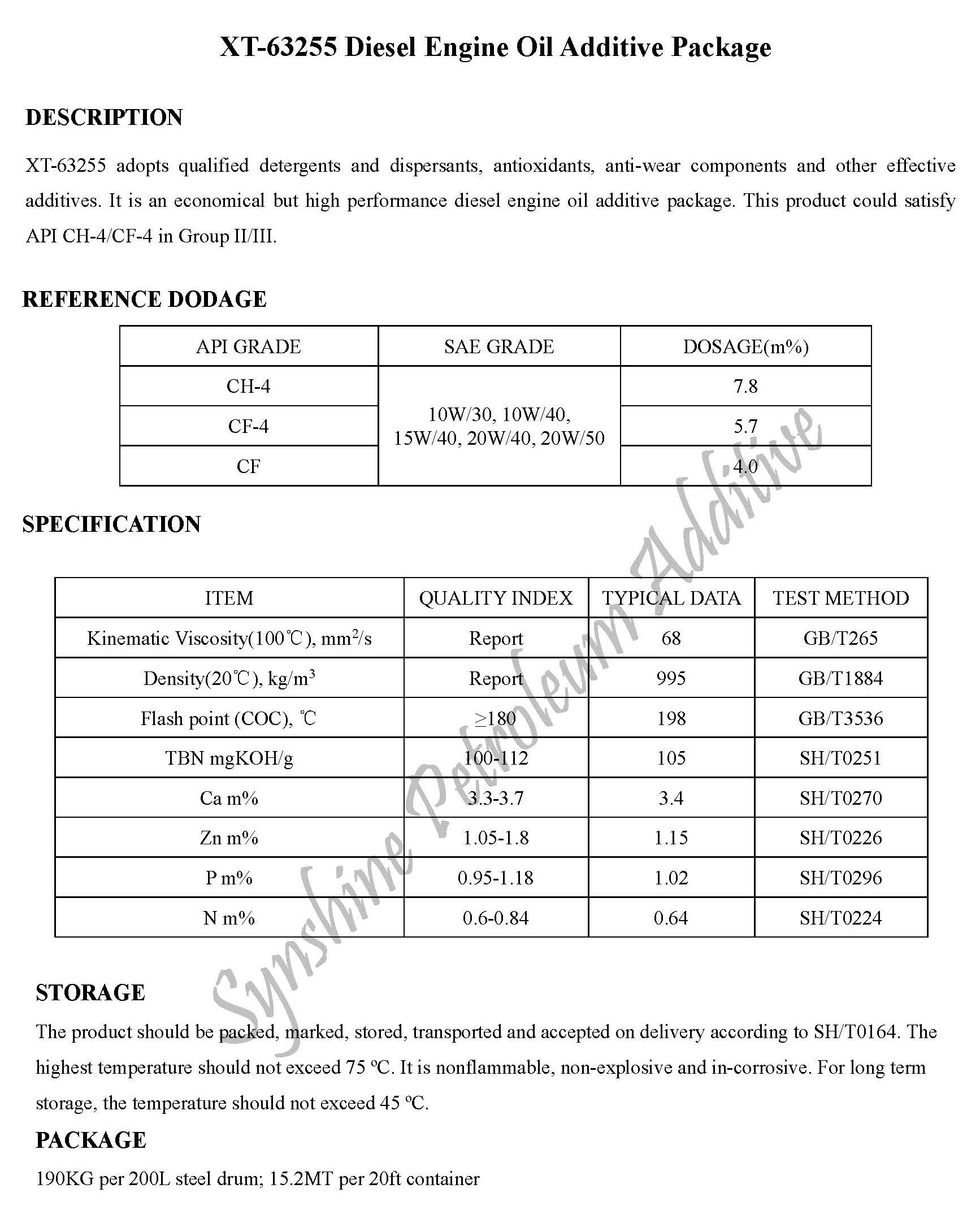 XT-63255 Diesel Engine Oil Additive Package-Engine Oil Additive Package-錦州新興石油添加劑有限責任公司