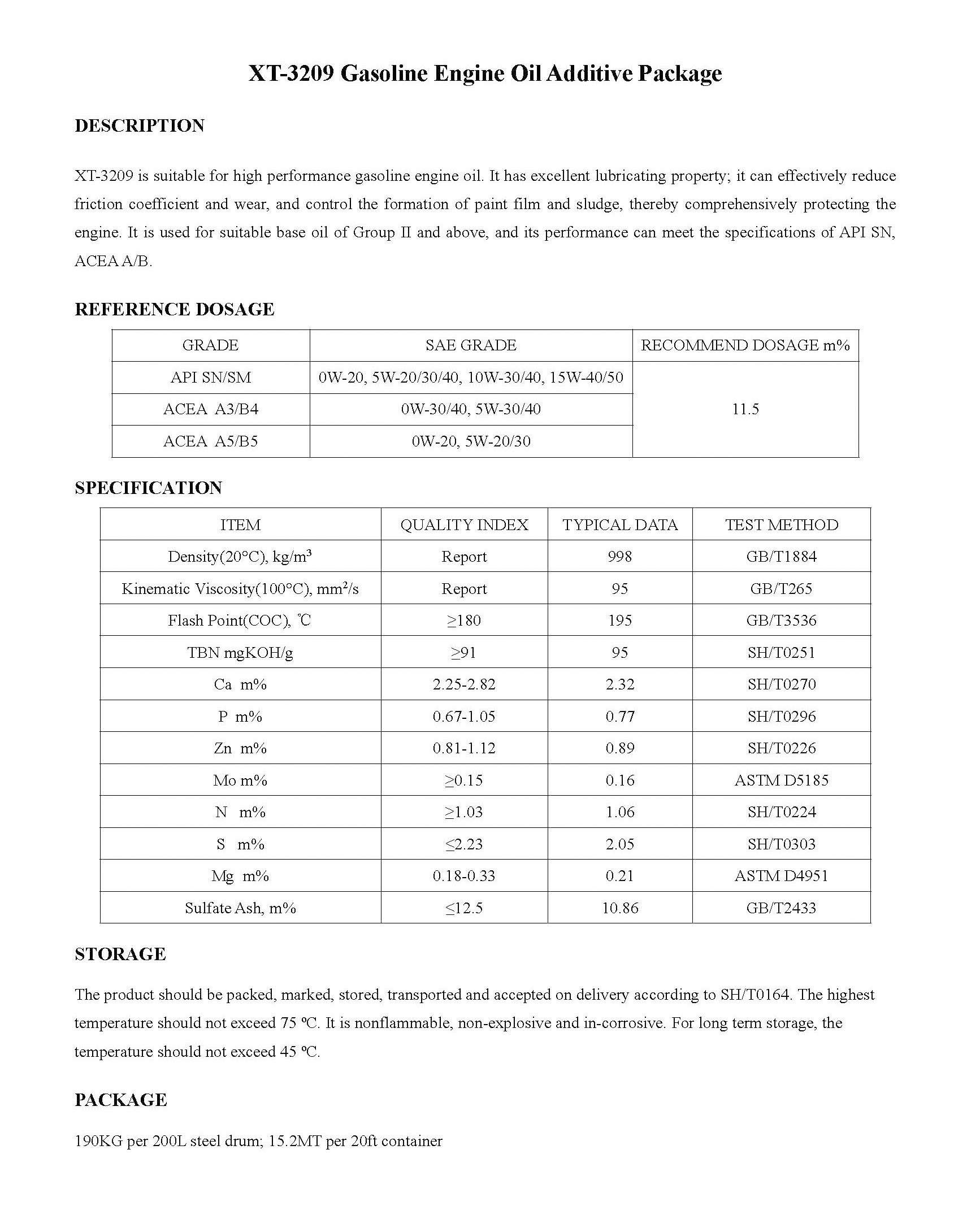 XT-3209 Gasoline Engine Oil Additive Package-Engine Oil Additive Package-錦州新興石油添加劑有限責(zé)任公司